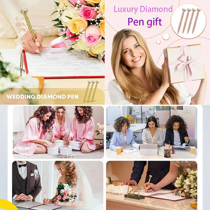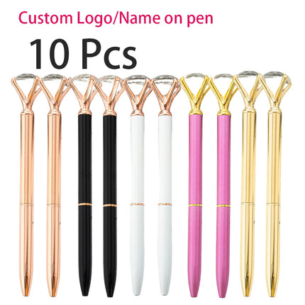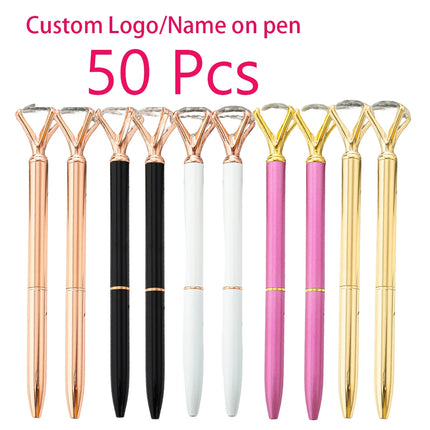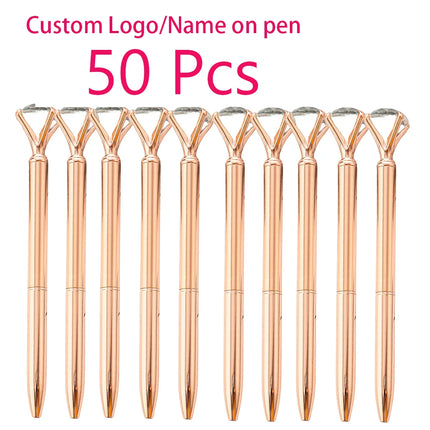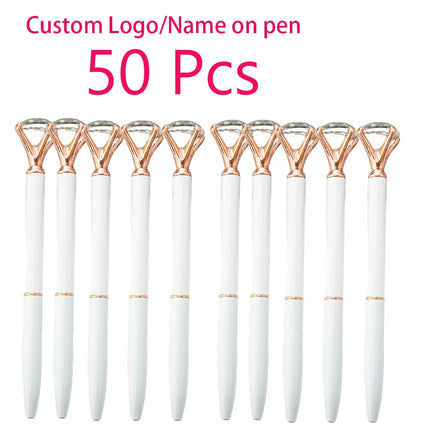 10-50 Custom Logo Crystal Diamond Pens Engrave Name Text Metal Ballpoint Pen Bridal Shower Pens for Wedding Office Birthday Gift