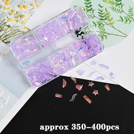 100pcs 3D Irregular Aurora Crystal Rhinestones Multi Shapes Aurora Nail Gems 6 Colors Flatback Shiny Nail Art Rhinestones Charms