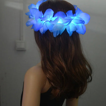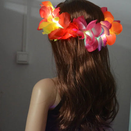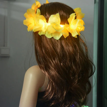 1pcs Women Girl LED Hawaii Hawaiian Lei Headband Glow Light Up Flower Crown Wreath