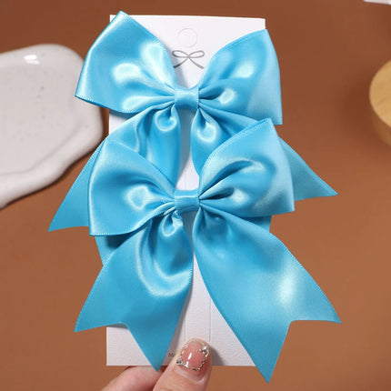 2pcs/set Solid Color Ribbon Grosgrain Bows Hair Clip for Kids Girls Hairpins Barrettes Handmade Baby Headwear Hair Accessories