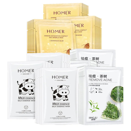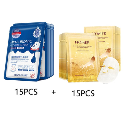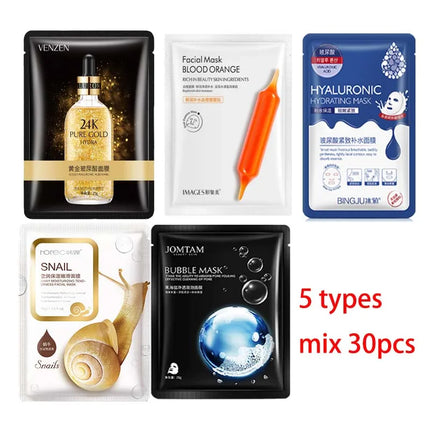 30PCS/Lot BIOAQUA Skin Care Sheet Mask Aloe Olives Pomegranate Seaweed Batch Facial Mask Korean Face Care Green Tea Mask
