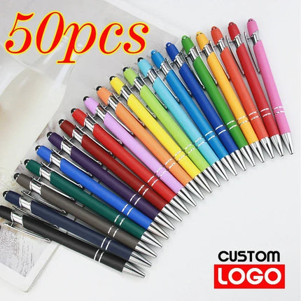 50pcs Light Metal Ballpoint Pen Touch Screen Pen Office School Advertising Pen Custom Logo Text Engraving Laser Engraving