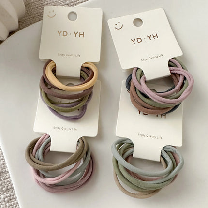 8pcs Soft Thin Nylon Elastic Hair Bands Women Solid Color Hair Ties Basic Ponytail Head Bands Seamless Comfy Hair Rope Mix Color