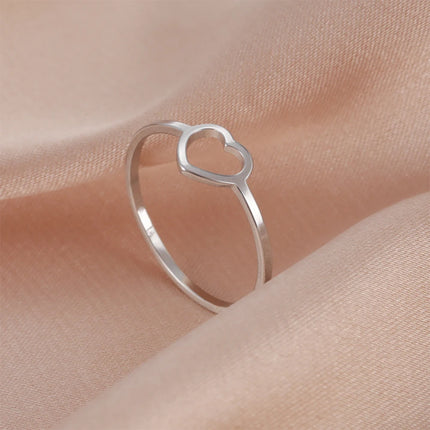 Amaxer Minimalist Heart Stainless Steel Rings For Girl Women Gold Color Cute Tiny Hollow Finger Ring Jewelry Gift