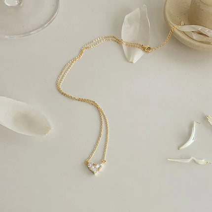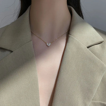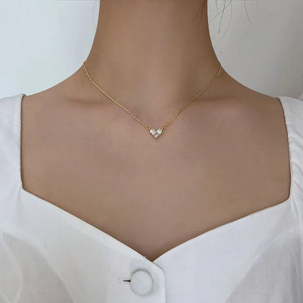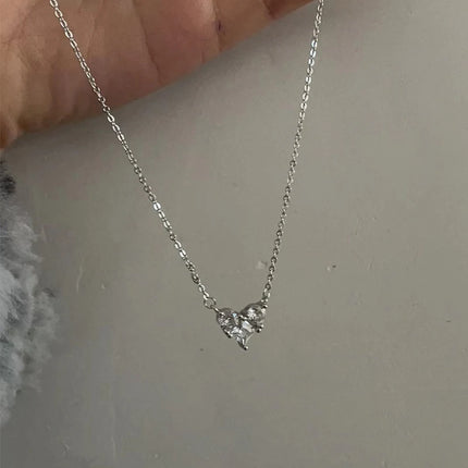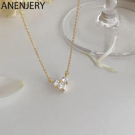 ANENJERY Silver Color Zircon Heart Necklace for Women Shiny Clavicle Chain Jewelry Gift Wholesale