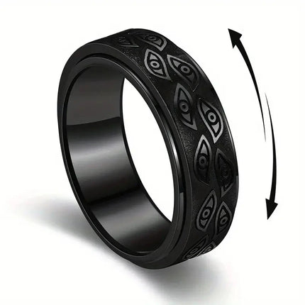 Anti Stress Stainless Steel Spinner Rings For Men Carved Demon Eye Rotatable Fidget Anxiety Joint Ring Jewelry Bague Homme
