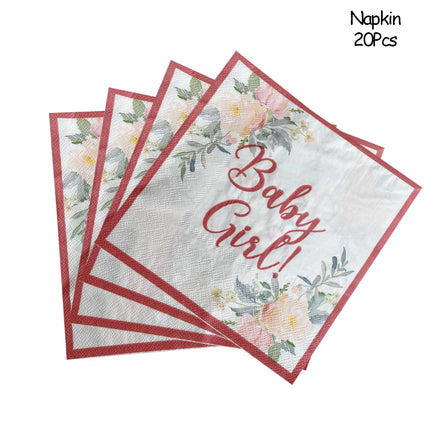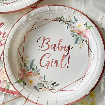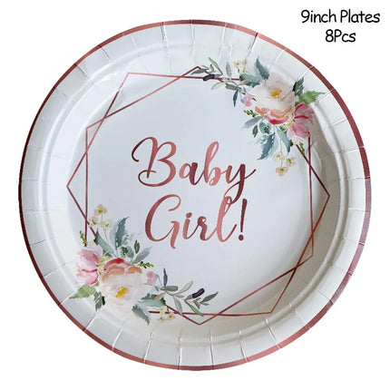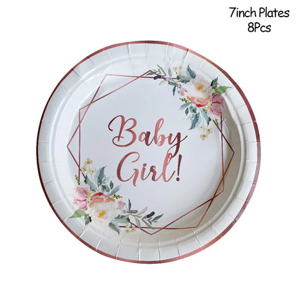 Baby Girl Paper Plates Cups Disposable Tableware Gender Reveals