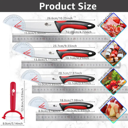 SPECIFICATIONSBlade Length: 15handle material: ABS+TPRblade color: whiteblade material: Ceramic knife,100% Zirconiapackaging: Chef Knife+Slicing Knife+Utility Knife+Paring KnifeFunction: Cleaver vegetables meat sushi... Read more