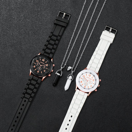 Couple Watches 4Pcs Set Fashion Silicone Strap Quartz Watch Magnetic Love Necklace
