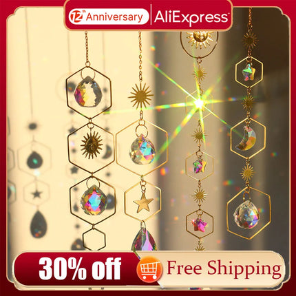 Crystal Wind Chime Hexagon Diamond Prisms Sun Catchers