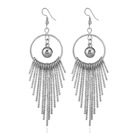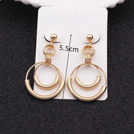 European American Exaggerate Big Round Swing Earrings For Women Geometric Shiny Tassel Long Drop Brincos Fashion Jewelry Gift