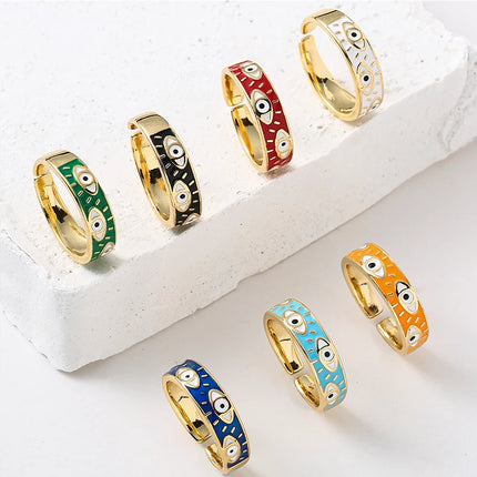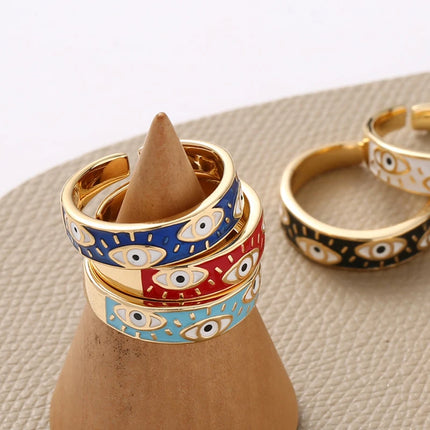 Fashion Aesthetic Evil Blue Eyes Finger Rings for Women Oil Dripping Stainless Steel Rings Adjustable Opening Ring Jewelry Gifts