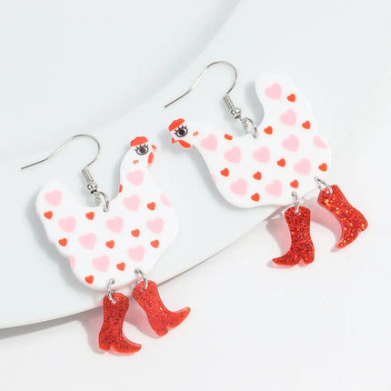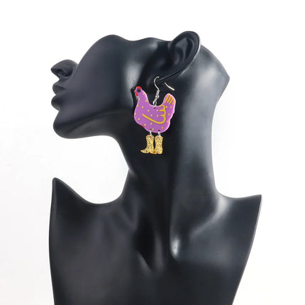 Hen Dots Funny Chicken High Heels Acrylic Earrings for Women Girls - Cartoon Animal Print Jewelry Gift
