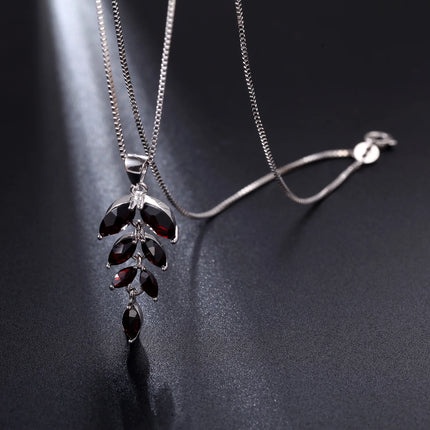 Gem's Ballet Olive Branch Peace Necklace with Black Garnet