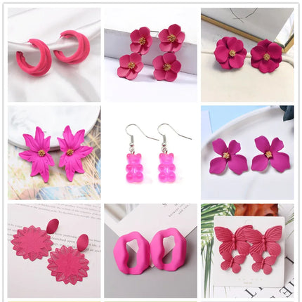 Rose Red Flower Bear Butterfly Drop Earrings - Trendy Women's Fashion Jewelry