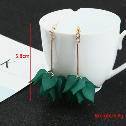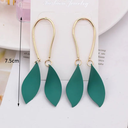 Green Crystal Bohemian Drop Earrings with Pearl Flower Pendants and Metal Leaves - Women's Fashion Jewelry