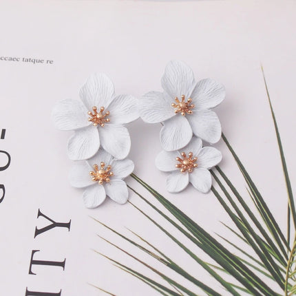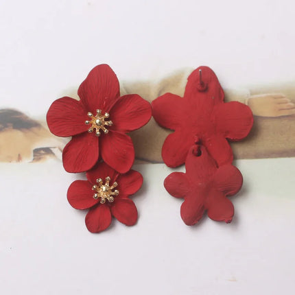 Korean New Double-layers Flower Drop Earrings for Ladies Exaggerated Women Floral Earrings Fashion Jewelry aretes de mujer