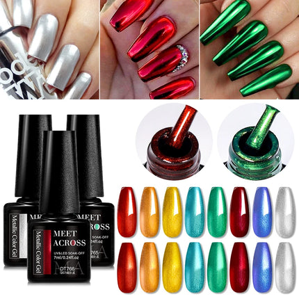 MEET ACROSS 8 Colors Mirror Gel Nail Polish Long-lasting Quick-drying Metallic Gold Silver Red Semi Permanent Varnish Nails Art