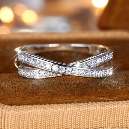 Minimalist Stacking Crossed Wedding Bands Black Gold Silver Color Blue Red Green Stone White Zircon Thin Rings For Women Jewelry