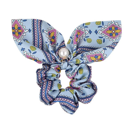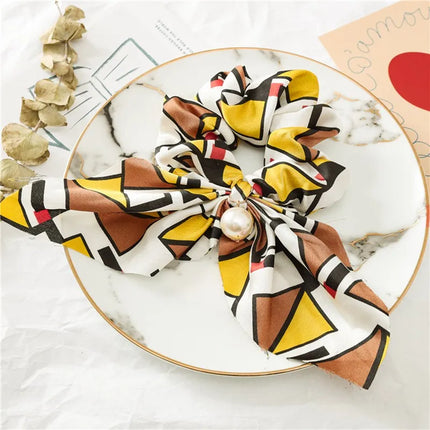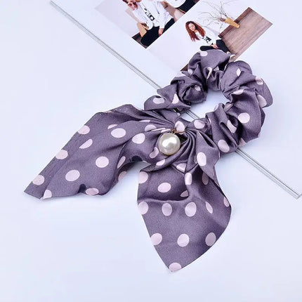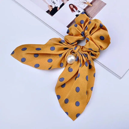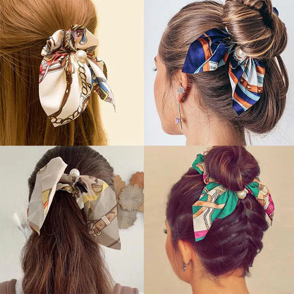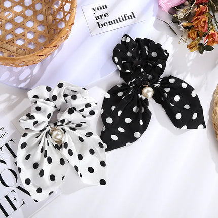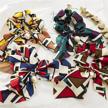 New Chiffon Bowknot Silk Hair Scrunchies Women Pearl Ponytail Holder Hair Ties Hair Rope Rubber Bands Headwear Hair Accessories