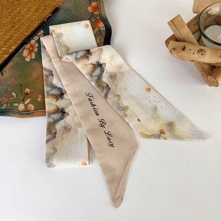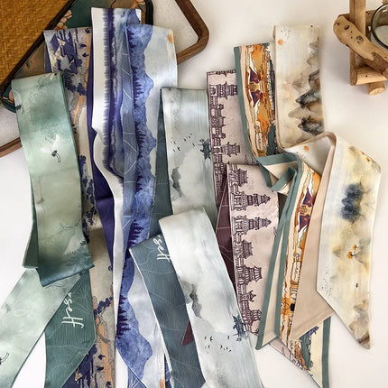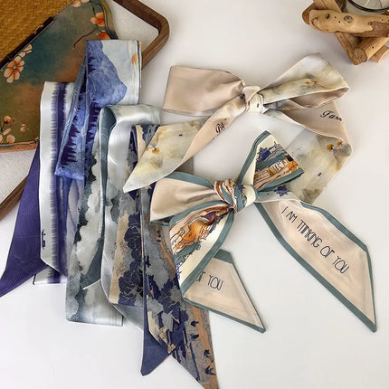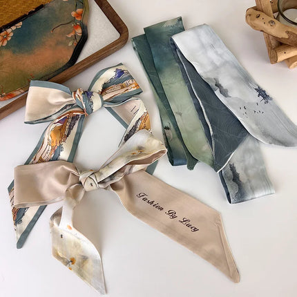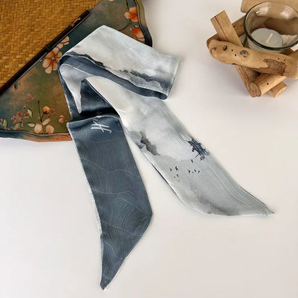 New Chinese Style Long Strip Silk Scarf Headband Hair Ring Hair Rope Retro Ribbon Womans Tied Hair Turban Ribbon Trend Headdress