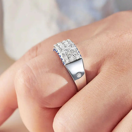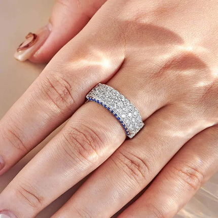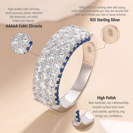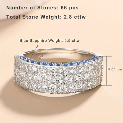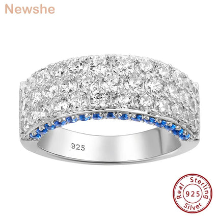 Newshe Genuine 925 Sterling Silver Blue Sapphire Wedding Band