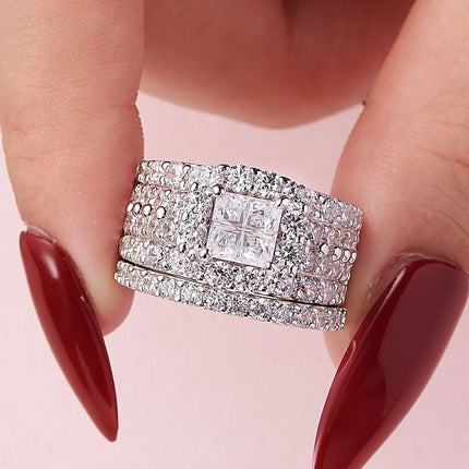 Newshe Halo Wedding Rings For Women 4 Carats Zirconia Set