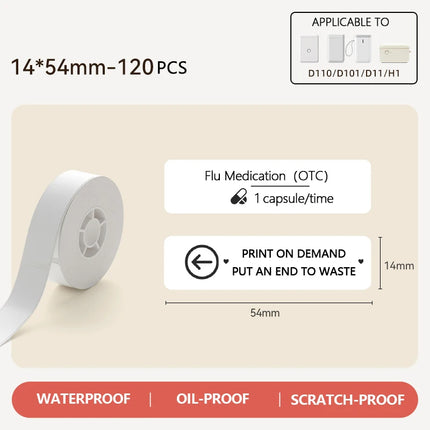 Niimbot 1Roll D110 White Sticker Waterproof Paper Adhesive Label White Anti-Oil For D11 D101 Mini Portable Thermal Printer Tape