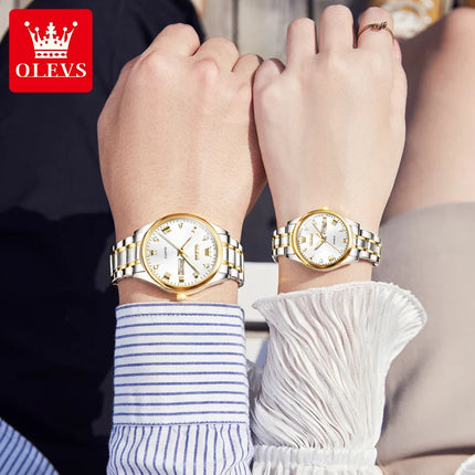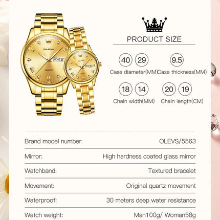 OLEVS 5563 Couple Watches Stainless Steel Waterproof Set