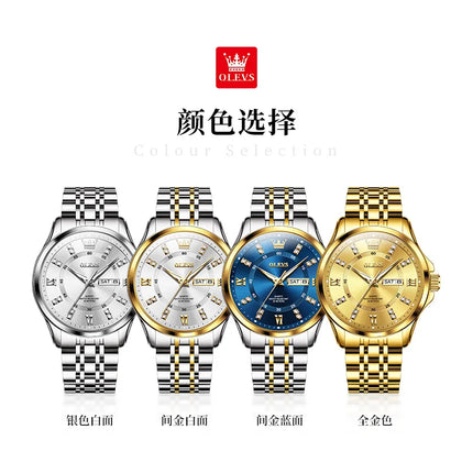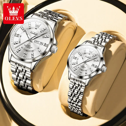 OLEVS Original Luxury Couple Watch Waterproof Luminous Quartz