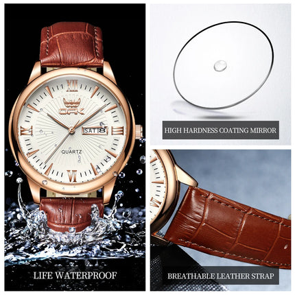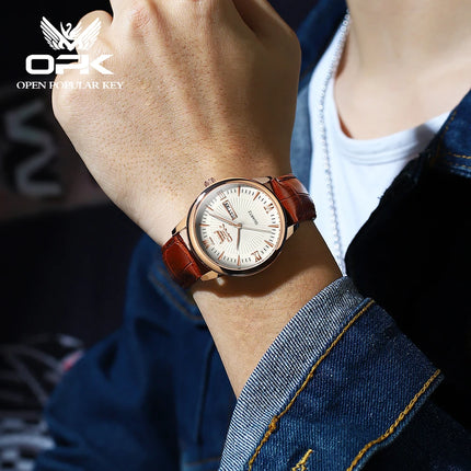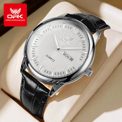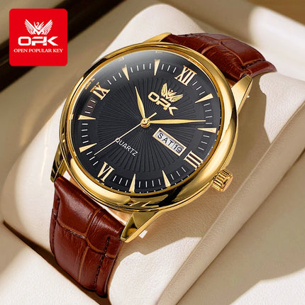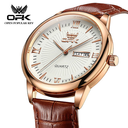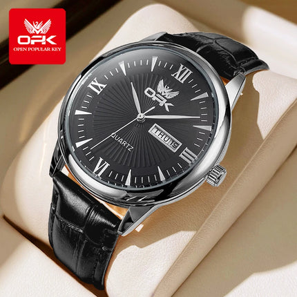 OPK 6014 New Classic Fashion Quartz Man Wrist Watches Dual Calendar Original Watch For Men Waterproof Leather Luxury Hand Clock