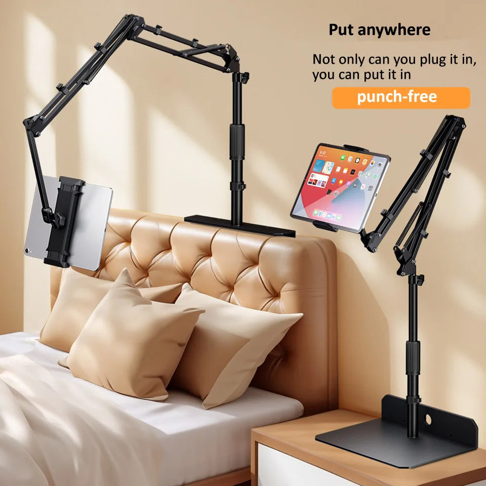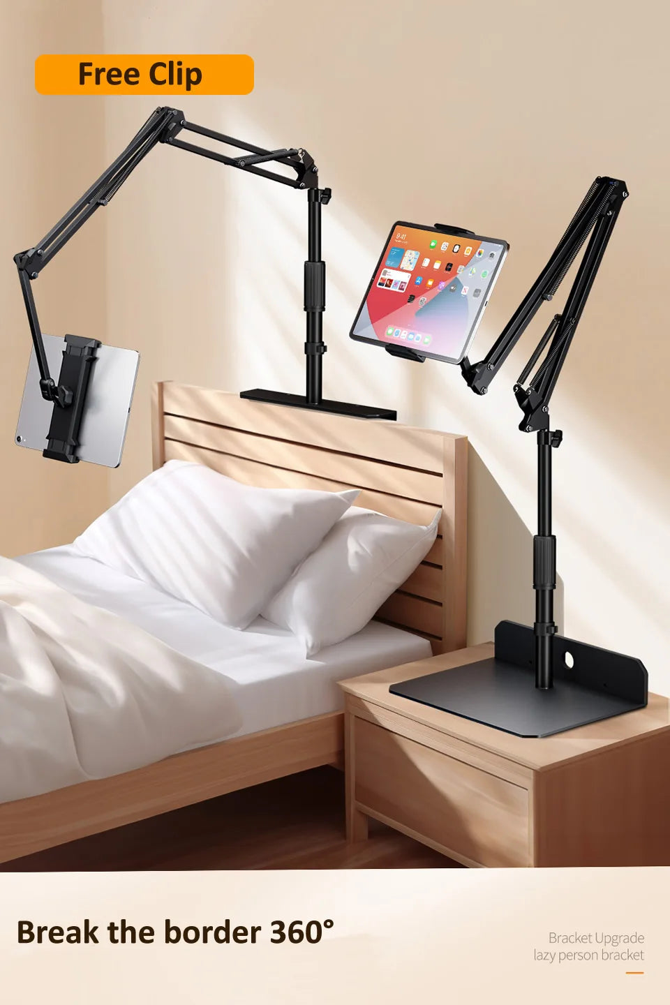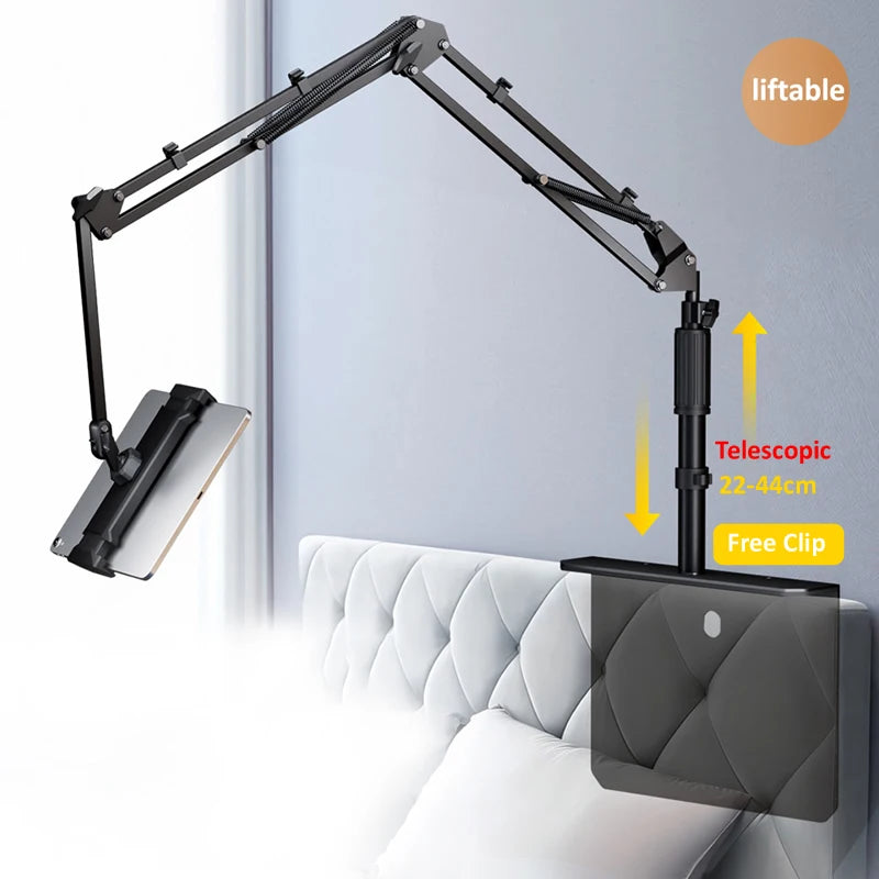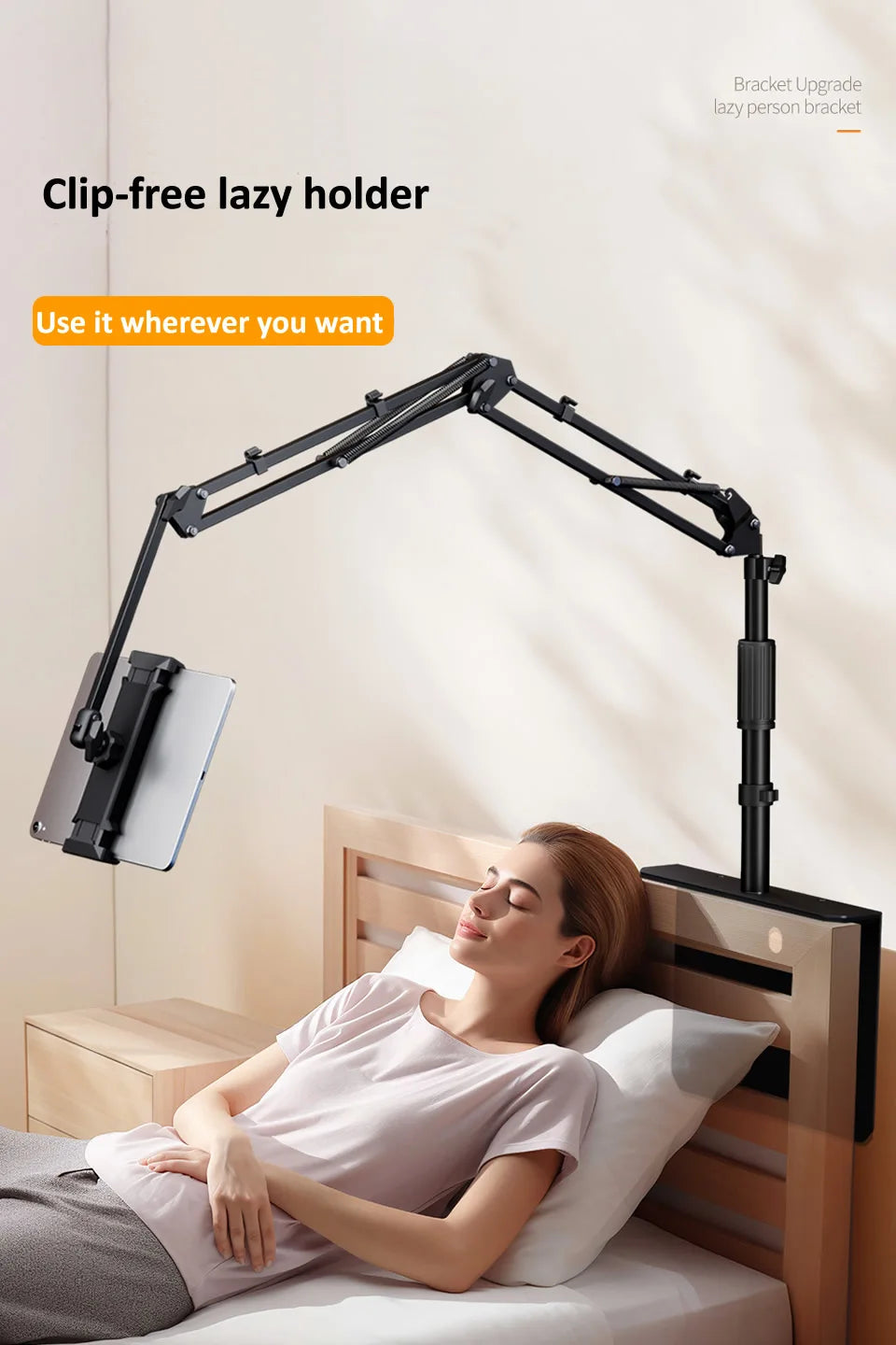 OUTMIX Bed Tablet Stand for 4-12.9 inches Phone Tablet Lazy Arm Bed Desk Tablet Mount Telescopic Support for iPad Mini Free Clip