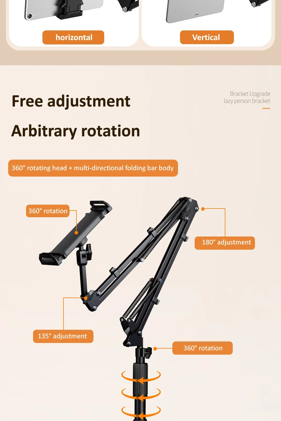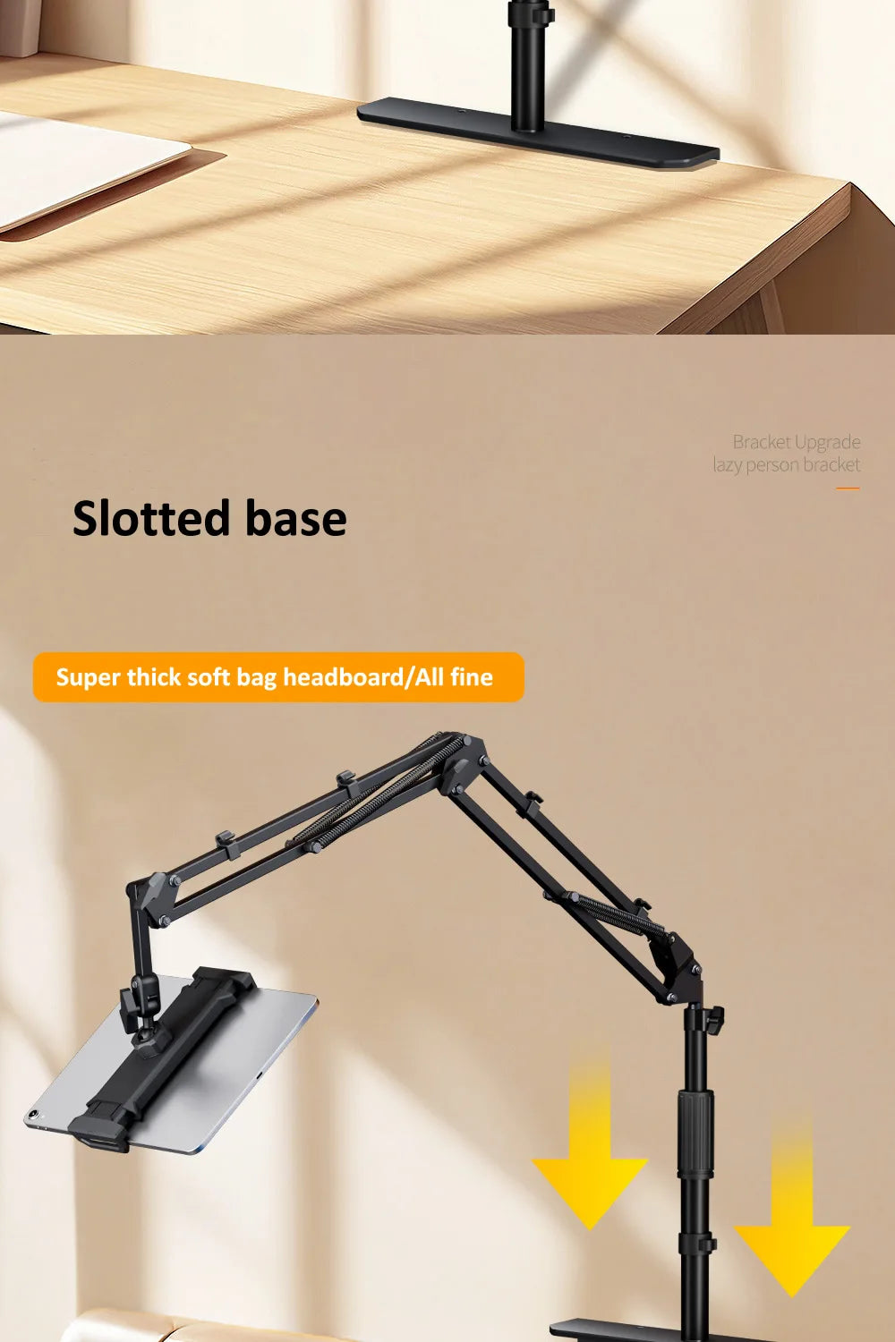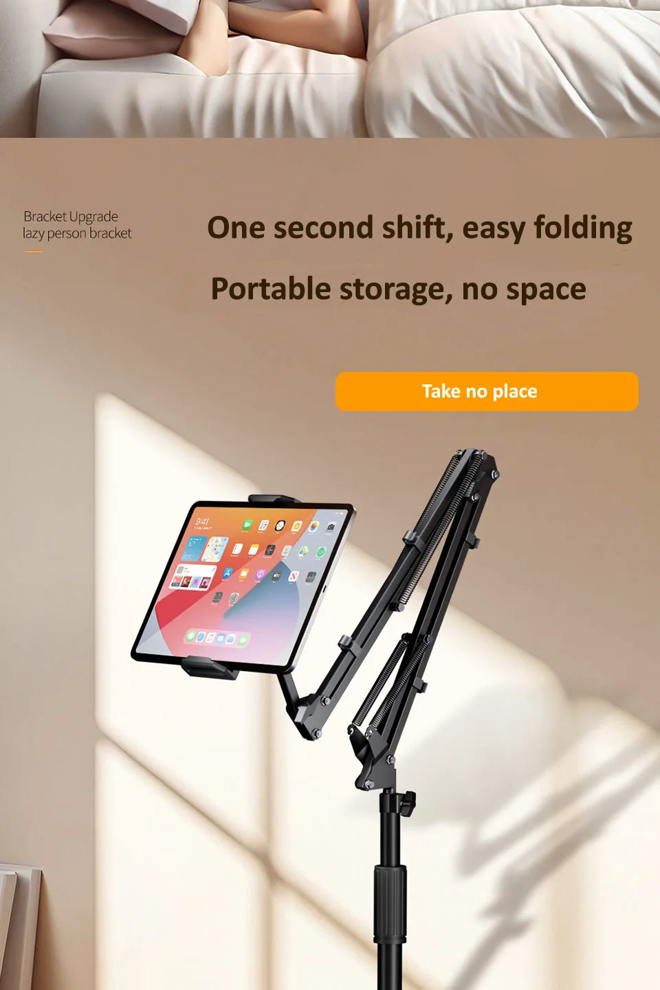 OUTMIX Bed Tablet Stand for 4-12.9 inches Phone Tablet Lazy Arm Bed Desk Tablet Mount Telescopic Support for iPad Mini Free Clip