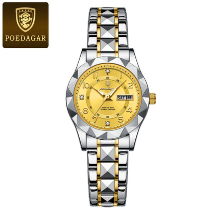 POEDAGAR Luxury Women's Watches Waterproof Luminous Date Week Ladies Watch for Female Quartz Stainless Steel Dress Women Watch