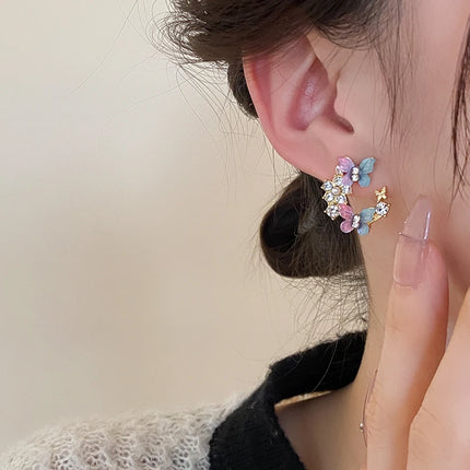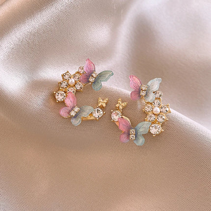 Butterfly Rhinestone Pearl Stud Earrings - Colorful Fashion Jewelry for Women
