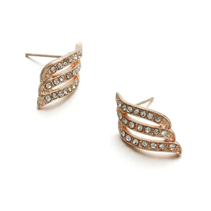 Crystal Winged Rose Gold Stud Earrings - Geometric Rhinestone Ear Jewelry