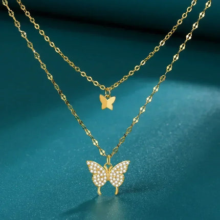 Silver Butterfly Necklace Women Crystal Zircon Pendant Necklace for Women Girl Crystal Chain Necklace Party Jewelry