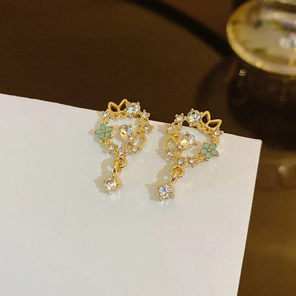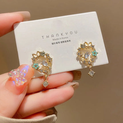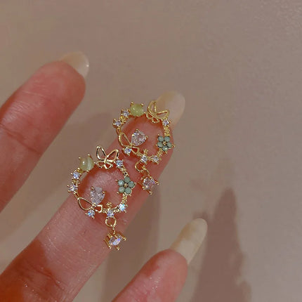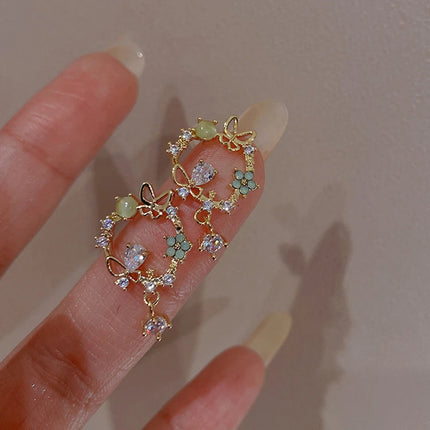 Korean Style Delicate Butterfly Eardrop Stud Earrings - Fashionable Zircon Jewelry for Women and Girls