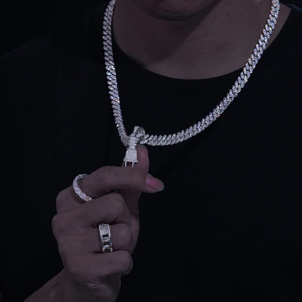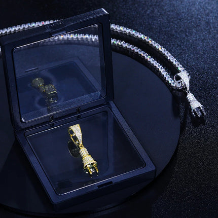 Tiny Iced Out Bling Plug Pendant Necklace for Men Silver