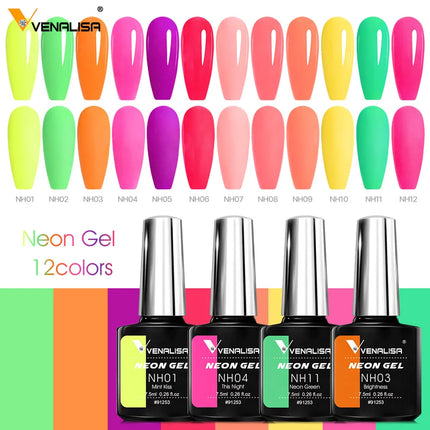 VENALISA 7.5ml Nail Gel Polish Ultra Bright Summer Neon Color Semi Permanent Soak off UV LED Fluorescence Gel Nail Varnish