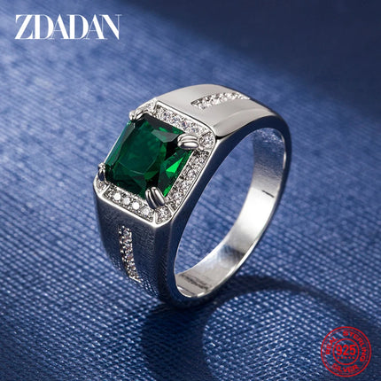 ZDADAN 925 Sterling Silver Blue Crystal Adjustable Ring For Women Men Fashion Party Jewelry Gift