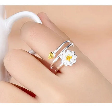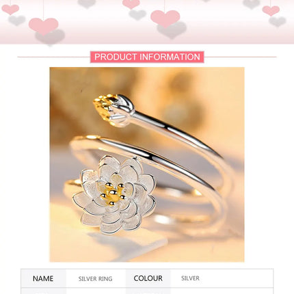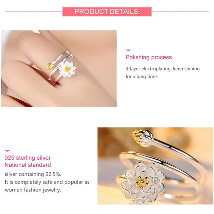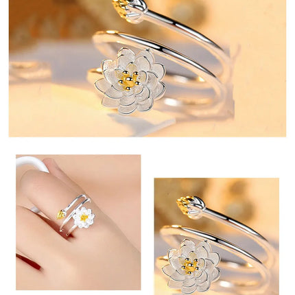 ZDADAN 925 Sterling Silver Charm Lotus Ring For Women Fashion Open Adjustable Finger Rings Jewelry Gift